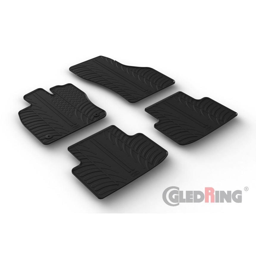 Gumowe dywaniki są produkowane na zamówienie i pasują dokładnie do każdego modelu pojazdu. Wyposażone są w zatyczki zabezpieczające. Gledring gwarantuje wymiary i kształt dywaników gumowych.
