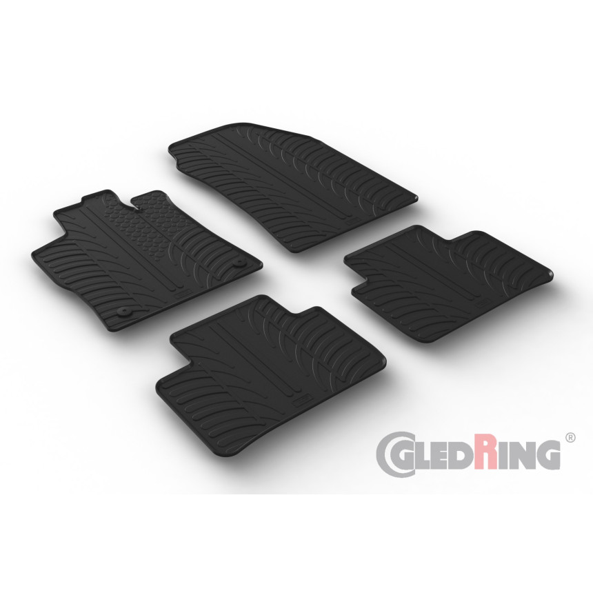 Gumowe dywaniki są produkowane na zamówienie i pasują dokładnie do każdego modelu pojazdu. Wyposażone są w zatyczki zabezpieczające. Gledring gwarantuje wymiary i kształt dywaników gumowych.