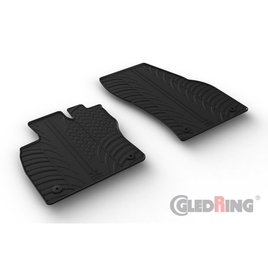Gumowe dywaniki są produkowane na zamówienie i pasują dokładnie do każdego modelu pojazdu. Wyposażone są w zatyczki zabezpieczające. Gledring gwarantuje wymiary i kształt dywaników gumowych.