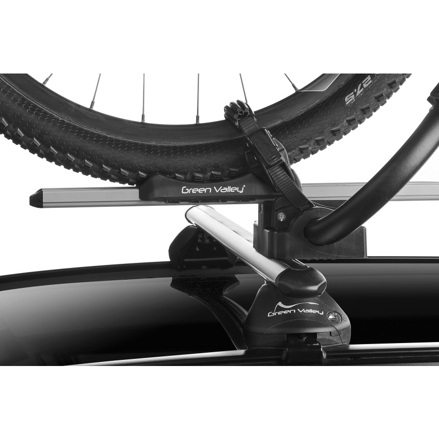 Nosilci za kolesa Green Vally-FAST RIDER so izredno kakovostni strešni nosilci proizveden v Italiji in zaradi svojega patenta omogočajo hitro nameščanje vašega kolesa. To je zaradi posebne patentirane čeljusti, ki objema prečke vseh velikosti in oblik mogoče narediti z eno roko. Na nosilcu za kolo je tudi nameščen samozatezni tračni pašček za fiksiranje pnevmatike. Tudi montaža na strešne nosilce je izredno enostavna saj ne potrebujete montažnega orodja. Strešni nosilci za kolesa FAST RIDER imajo 2 kratni sistem zaklepanja. S prvo ključavnico zaklenete nosilec FAST RIDER na strešne nosilce z drugo pa zaklenete čeljust, ki preprečuje krajo kolesa. Pri snemanju kolesa se ni treba bati, da bo kolo padlo s strehe saj, ko odklenete čeljust kolo ostane v prvotni poziciji. Strešni nosilci za kolo FAST RIDER se lahko pohvalijo z visoko noslivostjo 20kg, 3 letno garancijo in vsemi potrebnimi certifikati za prodajo po celem Svetu. Kompatibilni so z vsemi strešnimi nosilci tudi drugih blagovnih znamk (klik na montažo)) Zaradi svoje kakovosti so strešni nosilci Green Valley primerni za vse rekreativne in profesionalne kolesarje, ki cenijo enostavnost in dovršenost sistema.