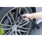 Głowica szczotki pokryta jest miękką, zmywalną ściereczką z mikrofibry. Materiał ten umożliwia dokładne czyszczenie felg bez ryzyka zarysowań czy uszkodzeń. Mikrofibra skutecznie usuwa brud, tłuszcz i inne zanieczyszczenia, jednocześnie będąc delikatną dla powierzchni. Ściereczka jest zdejmowana i nadaje się do wielokrotnego użytku.